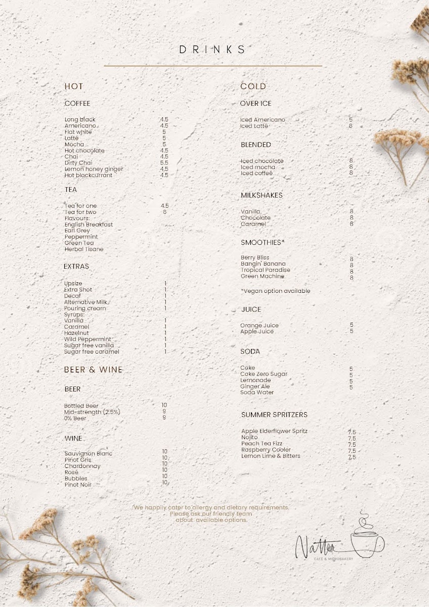 Food enthusiasts will be particularly enchanted by the café's standout offerings. Customers rave about the incredible bagels, describing them as one of the best experiences in recent memory. Pair that with Natter’s delectable caramel slice, and you've got a treat that feels both indulgent and comforting. If you're not in for a full meal, the cabinet food options—though limited close to closing time—are likely to entice with their fresh appeal. Just be sure to visit with enough time to enjoy the full breadth of offerings!